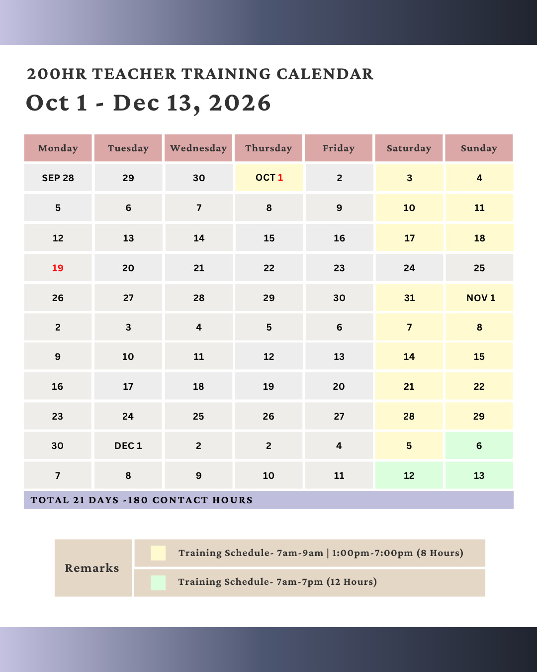 Training from Oct 1 - Dec 13, 2026